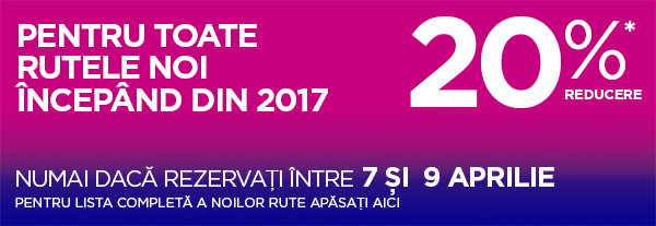 Și ca să înceapă în forță a lansat și o promoție prin care poți rezerva cu 20% reducere zboruri pe toate aceste rute noi.