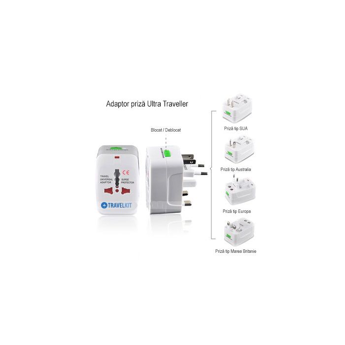 Adaptor priză universal (150+ țări) "Ultra Traveller"