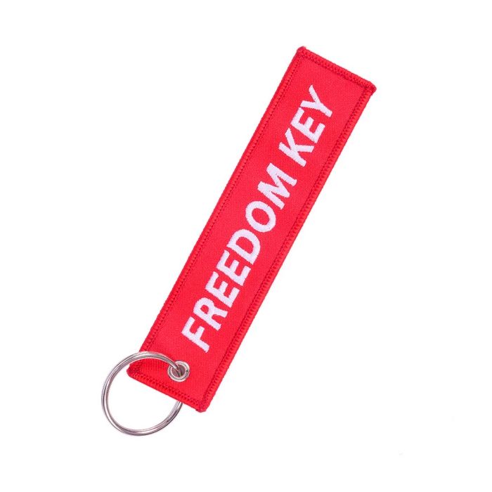Tag textil rosu inscriptionat "Freedom Key" din colectia Travelkit, pe care il poti folosi ca breloc pentru chei sau cu care poti decora diferite genti, bagaje sau chiar outfit-uri. Este un mod prin care poti sa-ti afirmi originalitatea si individualitatea discret dar totusi vizibil.