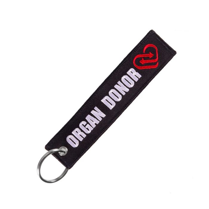 Tag textil negru inscriptionat "Organ Donor" din colectia Travelkit, pe care il poti folosi ca breloc pentru chei sau cu care poti decora diferite genti, bagaje sau chiar outfit-uri. Este un mod prin care poti sa-ti afirmi originalitatea si individualitatea discret dar totusi vizibil.