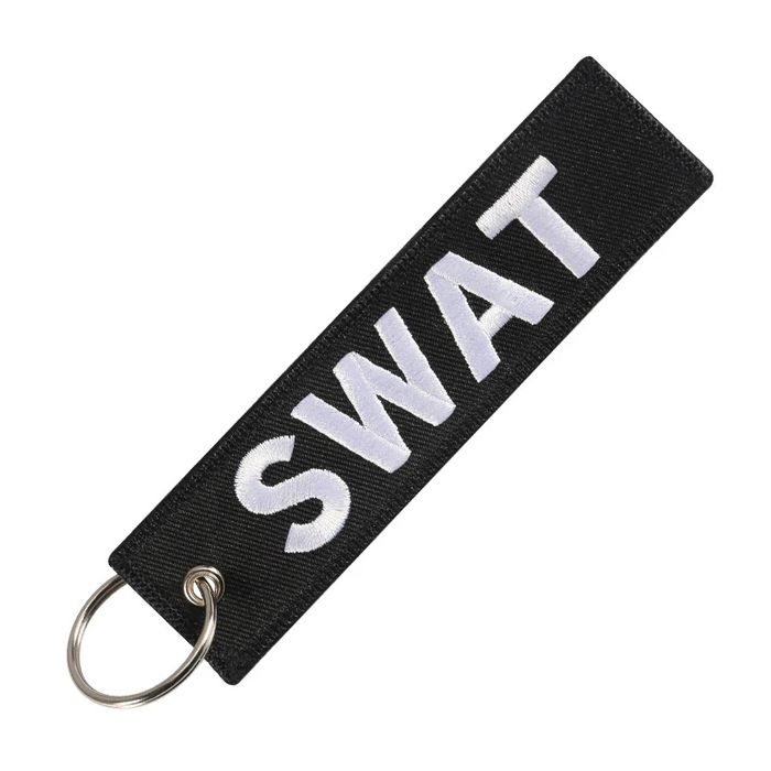 Tag textil negru inscriptionat "SWAT" din colectia Travelkit, pe care il poti folosi ca breloc pentru chei sau cu care poti decora diferite genti, bagaje sau chiar outfit-uri. Este un mod prin care poti sa-ti afirmi originalitatea si individualitatea discret dar totusi vizibil.