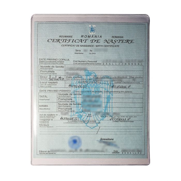 - Proiectat pentru Certificat de Naștere sau Căsătorie românesc, modelul actual
