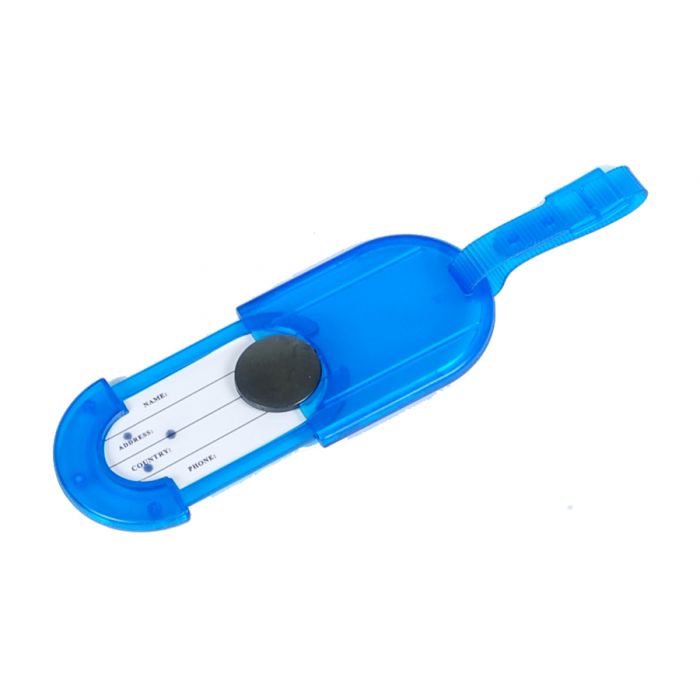 Eticheta este confectionata din material plastic flexibil si ofera posibilitatea de acoperire a informatiilor personale prin glisarea partii superioare.