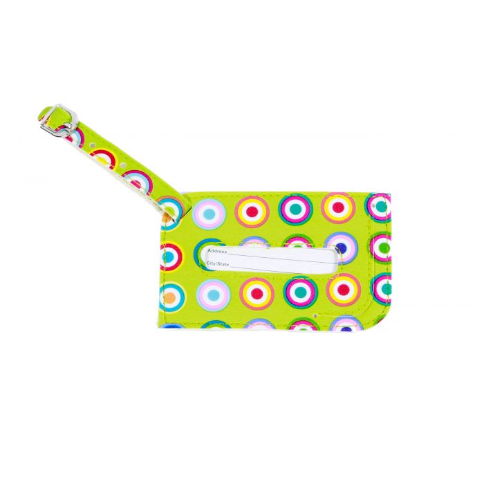 Datele personale sunt plasate în interior, existând numai o mică fereastră transparentă pentru a vă proteteja confidențialitatea de ochii persoanelor indiscrete. Culoarea aprinsă are rolul de a vă face bagajul vizibil și ușor de recunoscut în locurile aglomerate precum aeroporturile sau hotelurile. Se atașează de bagaj cu ajutorul unei curelușe de lungime ajustabilă prevăzută cu o cataramă pentru securizare.