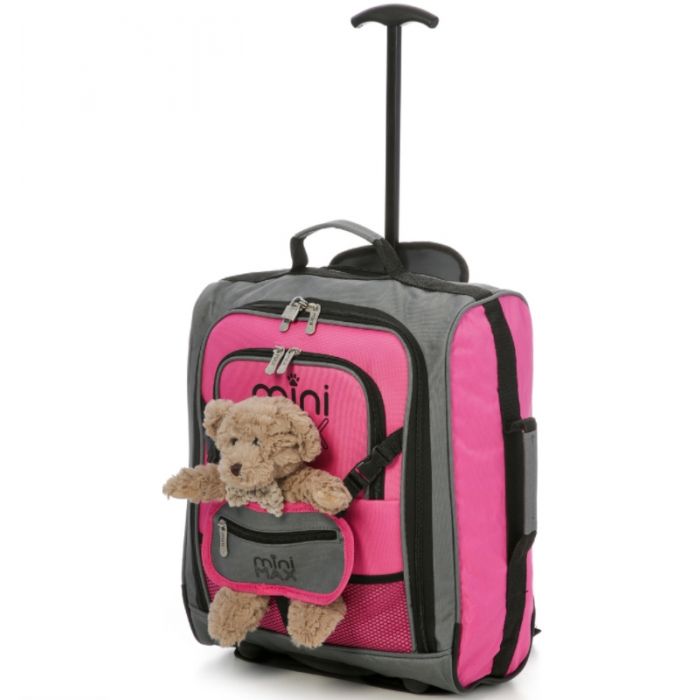 Ghiozdan Troler MiniMax (Roz) cu suport pentru păpușa sau plușul favorit și ursuleț de pluș inclus