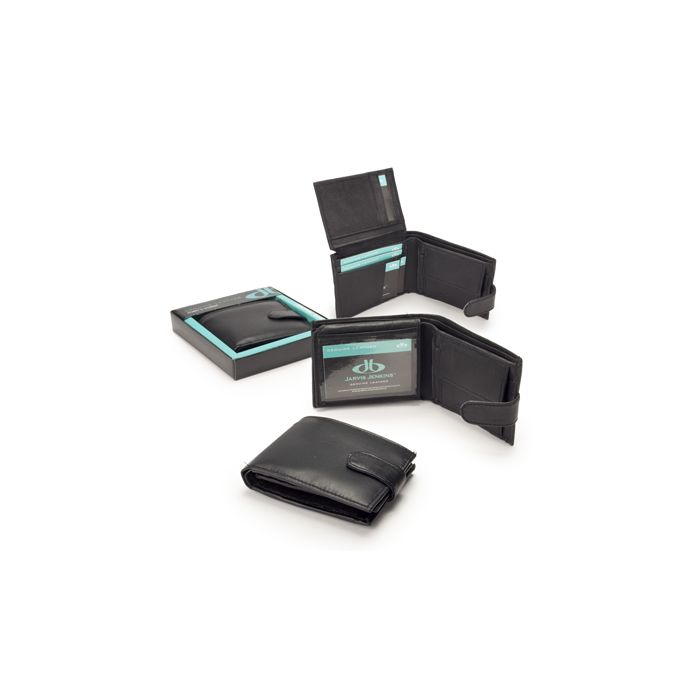 Portofel bărbătesc din piele naturală, prevăzut cu închidere cu capsă. Este confecționat din piele moale, de calitate superioară. Are 2 compartimente separate pentru bancnote, un compartiment expandabil pentru monede, două buzunare pentru bonuri și chitanțe precum și o secțiune care se poate îndoi, pentru opt card-uri bancare și un compartiment transparent pentru permisul de conducere sau alte legitimații cu poză. Se livrează în ambalaj individual de calitate și poate fi oferit cadou ca atare.