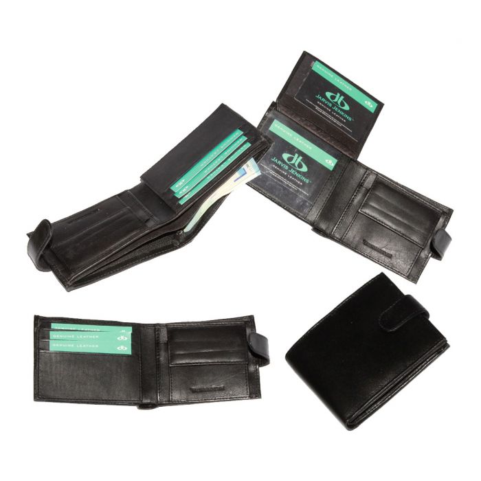 Portofel bărbătesc din piele naturală, prevăzut cu închidere cu capsă. Este confecționat din piele moale, de calitate superioară. Are 2 compartimente separate pentru bancnote plus un compartiment securizat cu fermoar pe toate lățimea portofelului. Interiorul extins permite 3 card-uri bancare plus două buzunare pentru bonuri și chitanțe precum și două compartimente transparente pentru permisul de conducere sau legitimații cu poză. Include și un compartiment pentru monede.