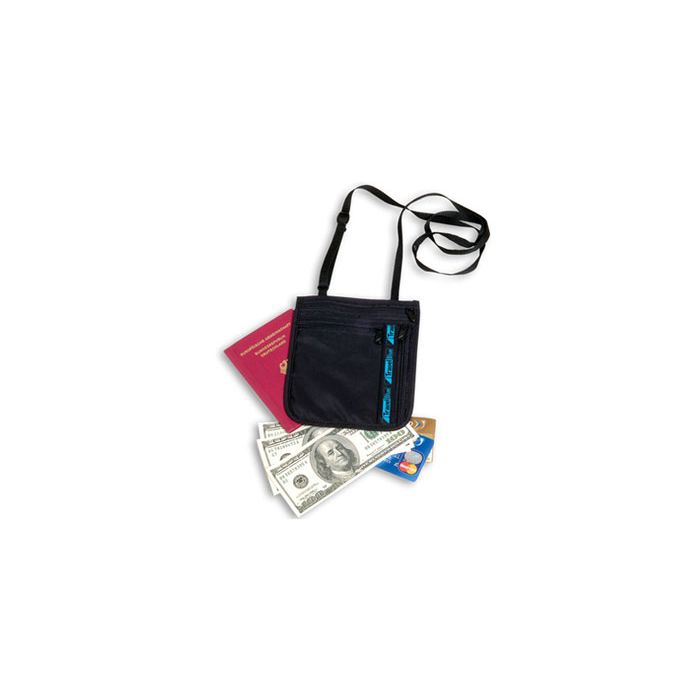 Portofelul prezinta o curea ajustabila si poate fi purtat in jurul gatului sau pe umar.