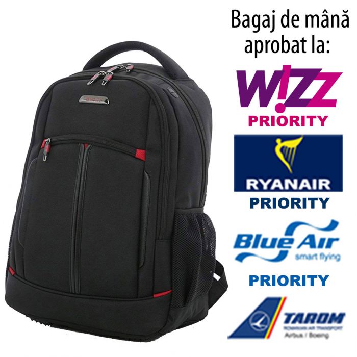 - Rucsac de cabină acceptat de toate marile companii aeriene (numai pt. pasageri Priority la Wizz Air și Ryanair)
