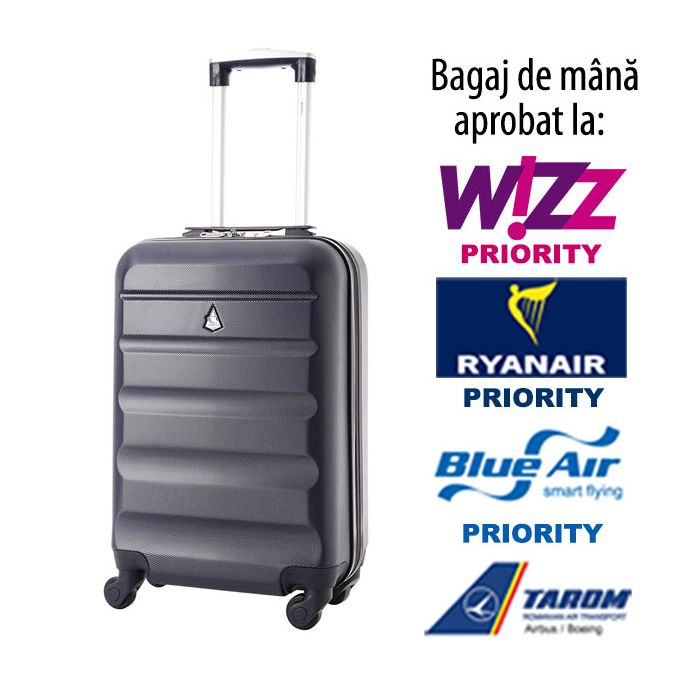 - COMPATIBIL CU TOATE LINIILE AERIENE: Știm că nu zbori de fiecare dată cu aceeași companie aeriană și de aceea am proiectat un troler de cabină compabil cu toate liniile aeriene din Europa, inclusiv cele low-cost, și chiar și cu cele din SUA. Includem aici Wizz Air (Priority), Ryanair Wizz Air (Priority), Blue Air Wizz Air (Priority), easyJet, Air France, British Airways, American Airlines, Delta, Flybe, Lufthansa, Norwegian, Jet2, KLM, Virgin Atlantic și așa mai departe! Dimensions: 55x35x20cm (toate părțile incluse), 48.5x35x20cm (numai corpul principal). Greutate: 2.6kg. Capacitate: 34L