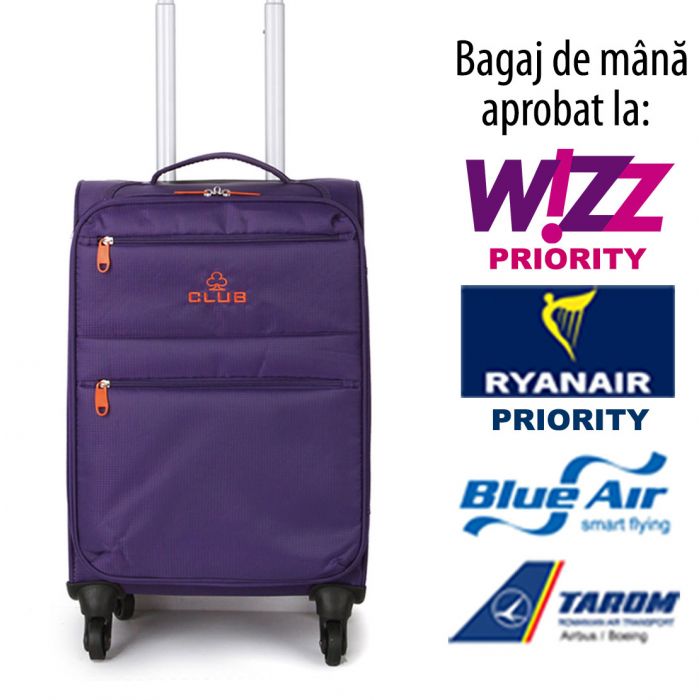 Troler de cabină cu patru roți care se încadrează în dimensiunile de bagaje de cabină pentru marea majoritate a liniilor aeriene. Acest troler face parte din gama noastră super-ușoară și deci nu este doar de dimensiunea potrivită dar e în același timp și extrem de ușor, cântărind numai 1,8kg! Este fabricat din polyester de calitate superioară, rezistent și durabil.