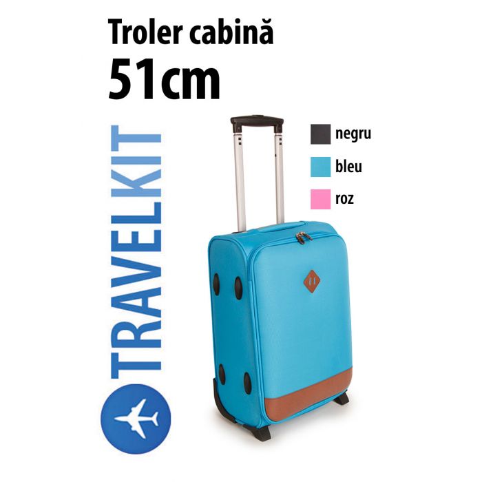 Troler de cabină cu două roți care se încadrează în dimensiunile de bagaje de cabină pentru Ryanair . Acest troler este fabricat din polyester de calitate superioară, rezistent și durabil, fiind prevăzut cu mâner telescopic cu funcție de auto-blocare, mânere rezistente în partea superioară și laterală precum și fermoare care se pot încuia cu lacăt (lacătul trebuie achiziționat separat).