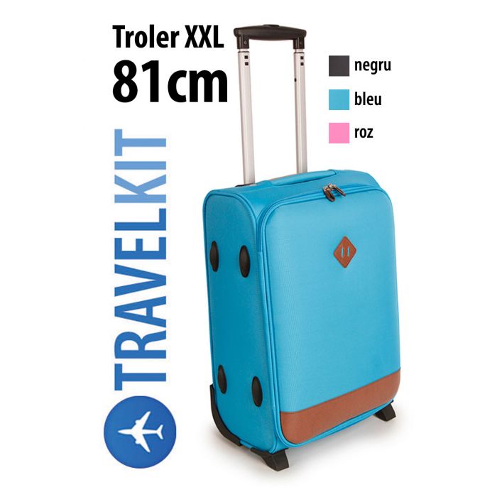 Troler XXL uriaș, cu volum de 105 litri și cu două roți. Acest troler este fabricat din polyester de calitate superioară, rezistent și durabil, fiind prevăzut cu mâner telescopic cu funcție de auto-blocare, mânere rezistente în partea superioară și laterală precum și fermoare care se pot încuia cu lacăt (lacătul trebuie achiziționat separat).